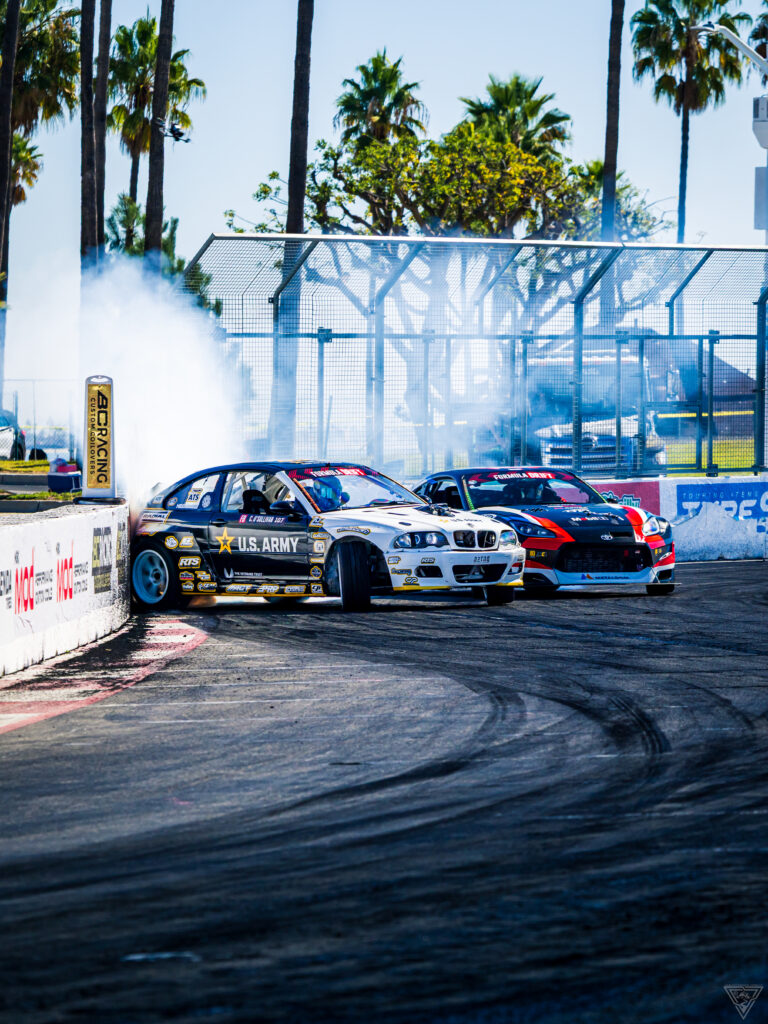 His first exposure to drifting came at Formula Drift Atlanta in 2021. That one event was enough—he shifted his full focus from stunt riding to drifting and never looked back. Within a few short seasons, he climbed into the PRO ranks and, in 2025, completed his rookie season with a Top 15 championship finish, including a Top 8 result at the Round 8 finale in Long Beach.