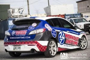 Recently we completed vehicle wrap design and installation for the local Workout Anytime franchise. This is the second time we