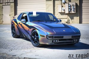 This 944 has been transformed from boring to awesome using a new vinyl by 3m called Psychedelic Flip. It allows