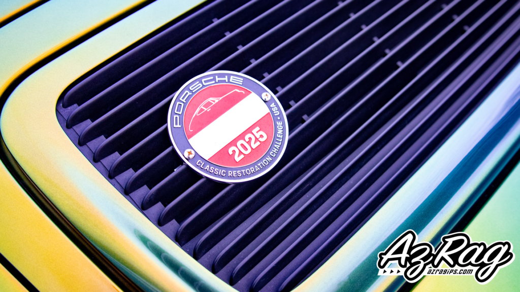 This car came to us already wearing something special: a chroma flair paint job laid down by Harper Porsche’s restoration team. If you’ve never seen chroma flair paint in person, imagine paint that can’t decide what color it is, then decides to be several, depending on light, angle, and how dramatic it’s feeling that day.