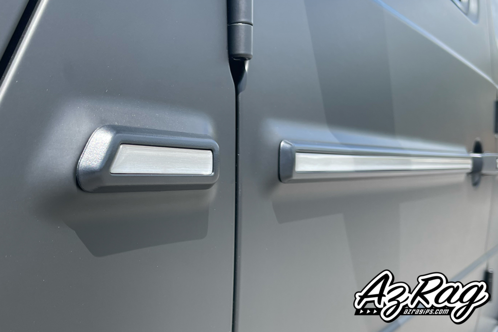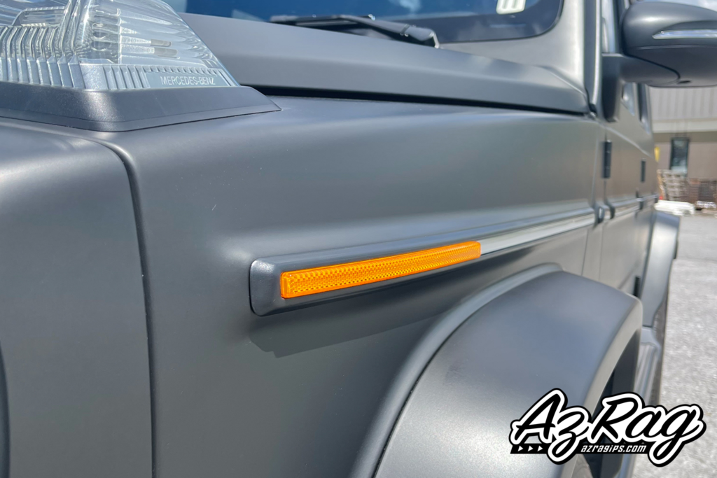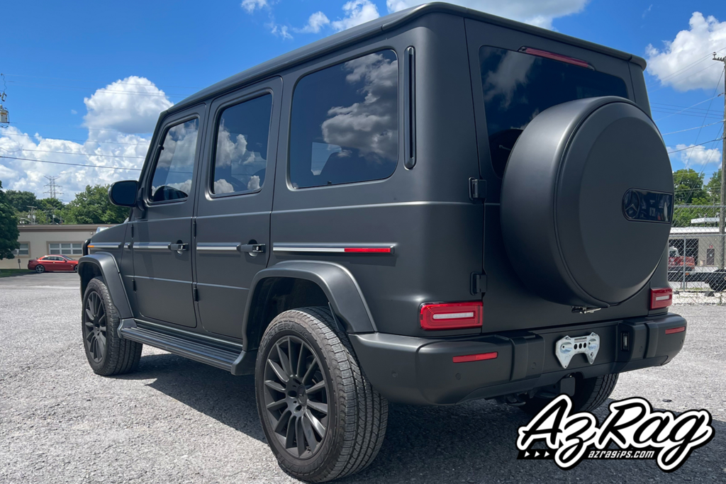 A G-Wagon full wrap covers a significant amount of surface area. Every body panel, door edge, and trim piece has to be addressed cleanly for the finished result to hold together. Matte finishes make installation errors immediately visible — there is no gloss reflection to mask inconsistencies in the surface.