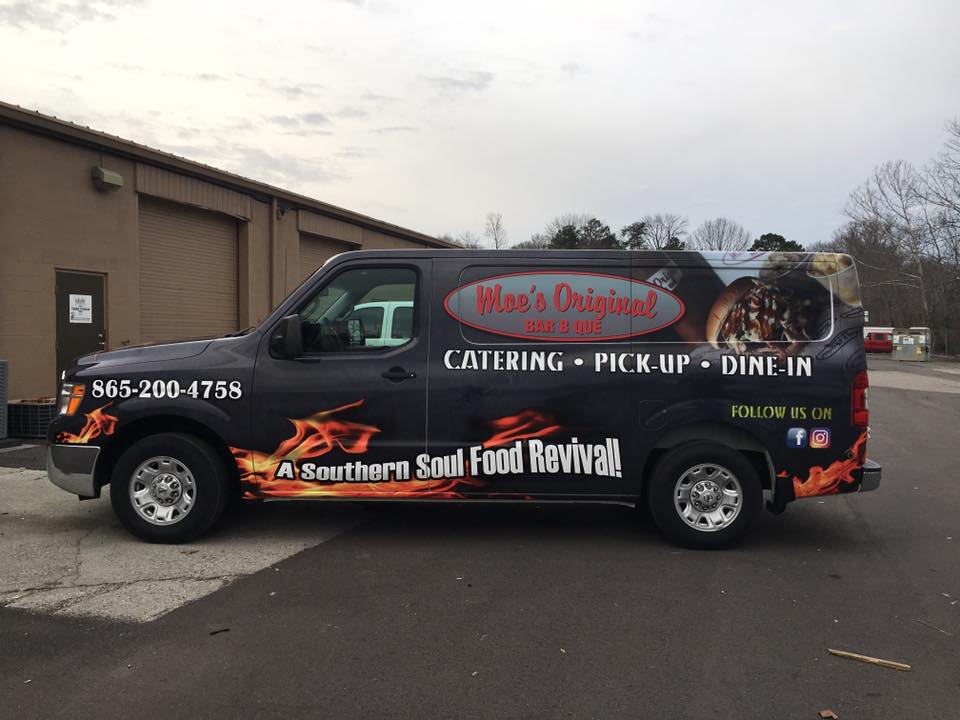 Moe’s Original BBQ reached out to us to have their new catering van vinyl wrapped. As most business owners know having a quick turnaround on a key vehicle of their fleet is very important. We delivered. Their Nissan NV features a full wrap that is printed using 3M materials with a gloss overlaminate.